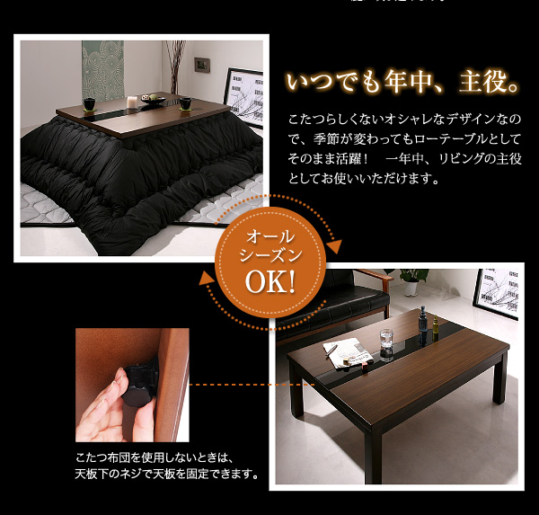 ヒーター部分は薄型設計なので、冬のこたつとしはもちろん、ローテーブルとして年中活躍します。