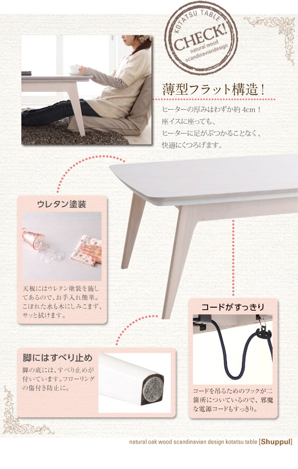 天然木×ホワイトウォッシュ フレンチカントリー調こたつテーブル 【Shuppul】シュップル