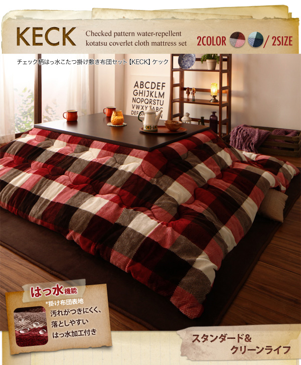 チェック柄はっ水こたつ掛け敷き布団セット【KECK】ケック