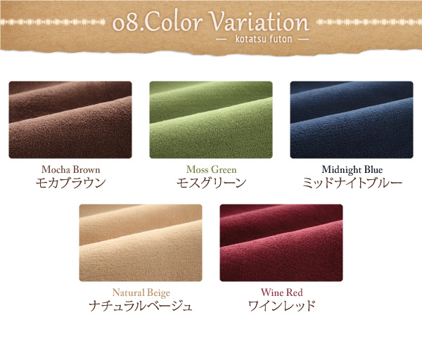 Wine red:赤ワインのような深みのあるカラーでほっこりさせてくれます。和室との相性も抜群。