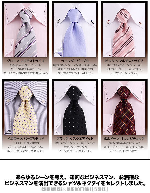 ワイシャツとの相性やデザイン、ビジネスだけでなくあらゆるシーンに対応できる柔軟さを大事にして、デザイナーがコーディネート!すでにお持ちのシャツにも合わせやすく、セットのシャツと合わせればまず間違い無し!!