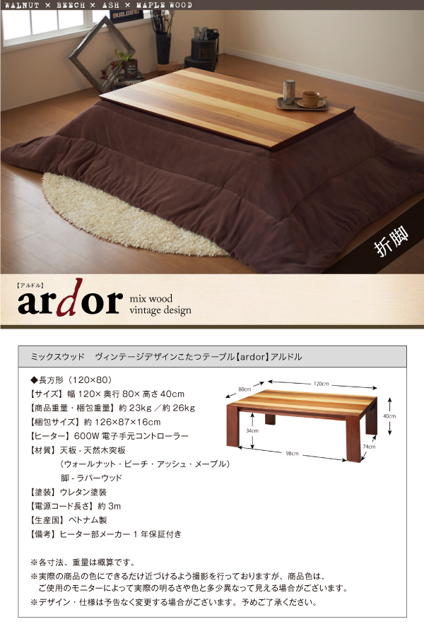 ミックスウッド ヴィンテージデザインこたつテーブル【ardor】アルドル