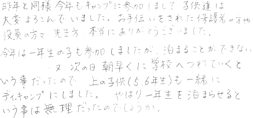 中学生になってしまうと、親の支援が少々違う所に要求されてきますので、こんなイベントは小学生で終わりになりますね。