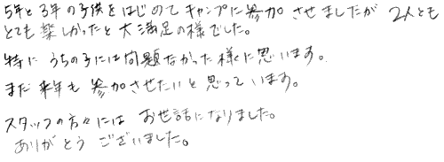 親父は楽しくやって帰りましたよ。みんないい経験をしたと思います。
